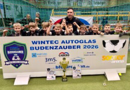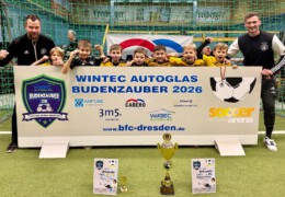 Das letzte Wochenende beim diesjährigen WINTEC Autoglas Budenzauber 2026 begann mit dem zweiten Turnier der F-Junioren. Pünktlich zum Turnierstart waren wieder 32 Teams aus den verschiedensten Regionen Ostdeutschlands angereist. Kein einziges Team kam Verlustpunktfrei durch die Vorrunde, was ein Fingerzeig auf ein sehr ausgeglichen besetztes Turnier war. Doch letztendlich standen im Halbfinale die vier besten Teams des Turniers, den sie zeigten in den vier verbleibenden Spielen um den Turniersieg besten Nachwuchsfußball mit Technik, Kampfgeist und Fairplay. Der Sieg ging nach Limbach-Oberfrohna! Der FSV hatte noch einige Probleme in der Vorrunde und setzte sich auch in den Überkreuzvergleichen alles andere als souverän durch. Aber die Leistung im Finale gegen die bärenstarken Jungs vom FV Preussen Eberswalde rechtfertigte dann endgültig den verdienten Turniersieg. Dritter wurde SG Handwerk Rabenstein, die sich ebenso knapp gegen das beste Dresdner Team von TSV Rotation Dresden durchsetzten.