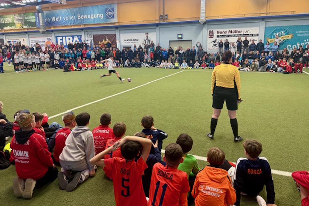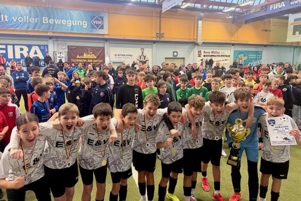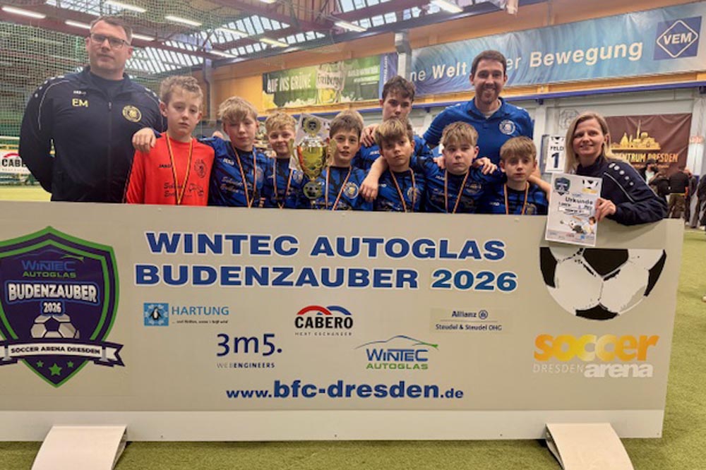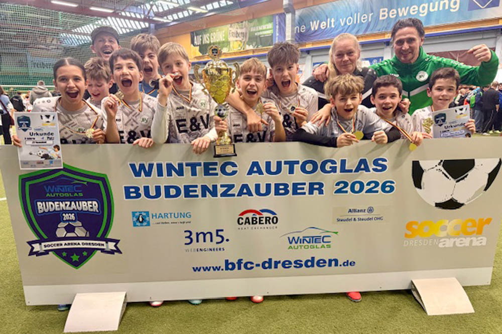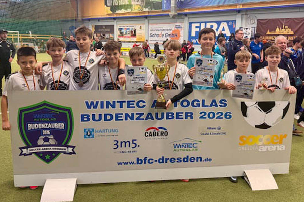 Drittes und letztes D-Junioren-Turnier wieder mit 32 Teams aus dem Osten Deutschlands. Die Teams aus Dresden und Umgebung hatten sich für diese Challenge viel vorgenommen und wollten den Siegerpokal diesmal unbedingt in der Region behalten. Aber die Talenteschmiede vom JFV Neuseenland hatte etwas dagegen und hielt sich nach einer blitzsauberen Vorrunde auch in den Überkreuzvergleichen schadlos. Im Finale trafen sie mit dem Radeberger SV 2 auf den härtesten Brocken des Turniers und es war ein herrlicher Fight auf Augenhöhe, der erst im Strafstoßschiessen die Rand-Leipziger als glückliche Sieger fand. Dritter wurde der Döbelner SC 1, die den besten Spieler und den besten Torhüter des Turnieres stellten.