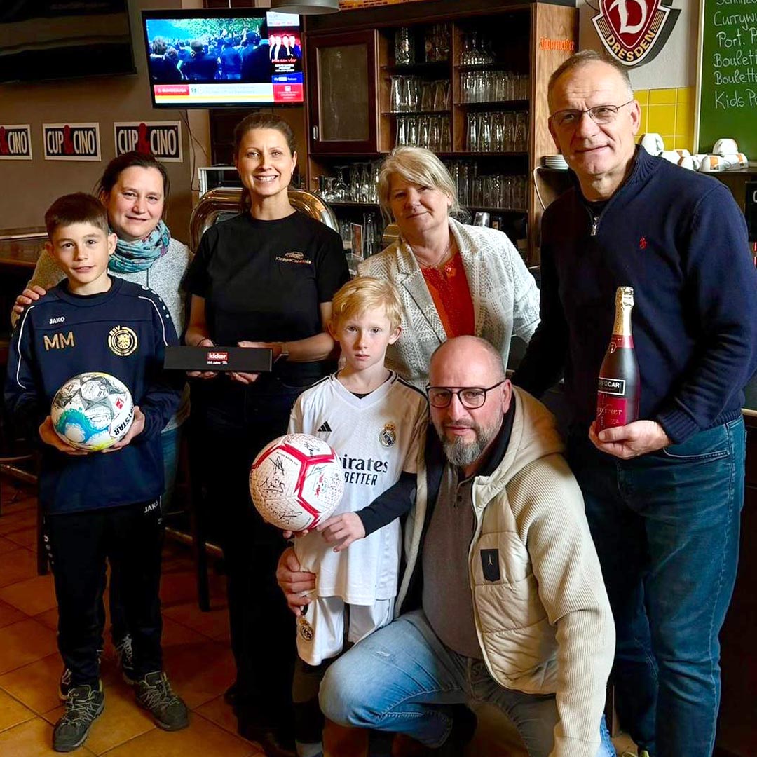 Am Freitag, den 20.03.2026 fand die Preisübergabe für die Tombola-Gewinner in der SoccerArenaDresden statt. Das Team Kloppocar war mit Mandy und Arne vor Ort. Die beiden anwesenden Gewinner Familien aus Dresden und Radeberg wurden zunächst zu Kaffee und Kuchen eingeladen und danach wurden dann die Preise überreichte. Zwei weitere glückliche Gewinner konnten nicht anwesend sein und bekommen ihre Preise per Post zugesendet. Ein Preis sucht noch seinen Besitzer, der sich noch nicht beim Team Kloppocar gemeldet hat.