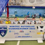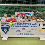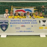 An diesem Sonntag war Showtime für das erste Turnier der E-Junioren beim WINTEC Autoglas Budenzauber 2025. 32 Mannschaften aus den verschiedensten Regionen von Thüringen, Sachsen-Anhalt, Brandenburg und Sachsen reisten mit ihren zahlreichen Fans pünktlich an und ballerten sofort aus allen Rohren. Am Ende qualifizierten sich zwei Teams für das große Finale, die auch in der Vorrundengruppe aufeinandergetroffen waren und sich dort mit einem 3:3-Unentschieden trennten. TuS Weinböhla und VFC Plauen lieferten sich auch im Endspiel einen großen Fight, mit dem besseren Ende für die Kicker aus dem Erholungsort im Landkreis Meißen. Platz 3 ging an die starke Truppe des SV Eintracht Leipzig Süd.