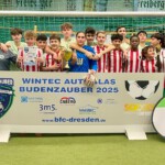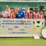 Der Abschluss des vierten Wochenendes beim WINTEC Autoglas Budenzauber 2025 war den C-Junioren vorbehalten. Auch bei diesem Turnier gehörte das erste große Dankeschön den vielen Fahrern, Eltern, Betreuern und Trainern, die wieder 32 Teams aus Mitteldeutschland, Brandenburg und Tschechien pünktlich 08:55 Uhr zur Turniereröffnung an den Start brachten. Diesmal ging der Sieg nach Berlin zum TSV Rudow II, die sich aber nach einem von der Taktik geprägten Finale letztendlich erst im Strafstoßschiessen gegen den Döbelner SC durchsetzen können. Platz 3 ging nach Thüringen zum SV Schott Jena, die sich ebenfalls im Strafstoßschiessen gegen das beste Dresdner Team der SG Dölzschen 1928 durchsetzten.